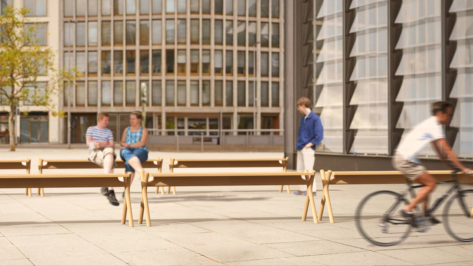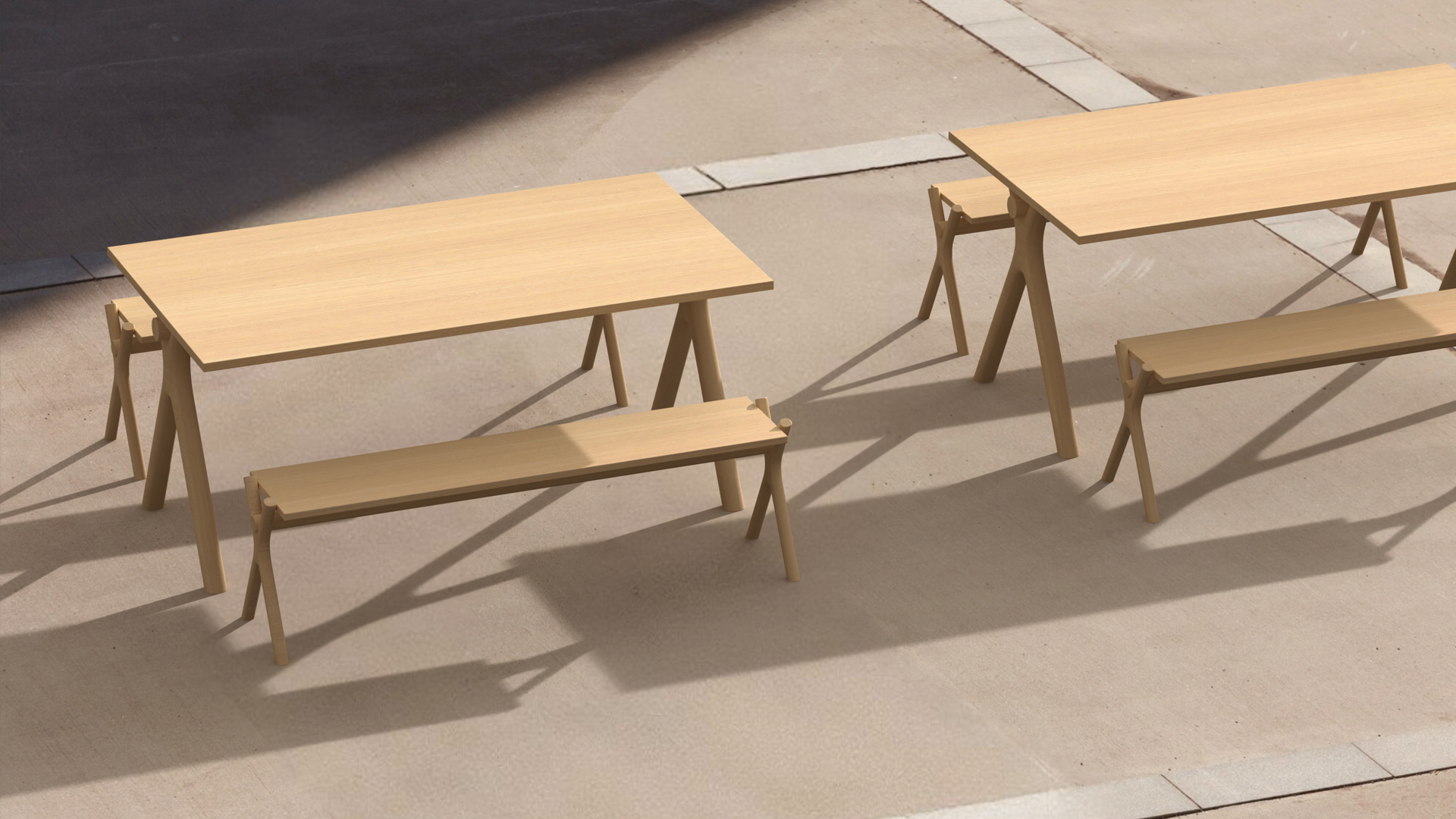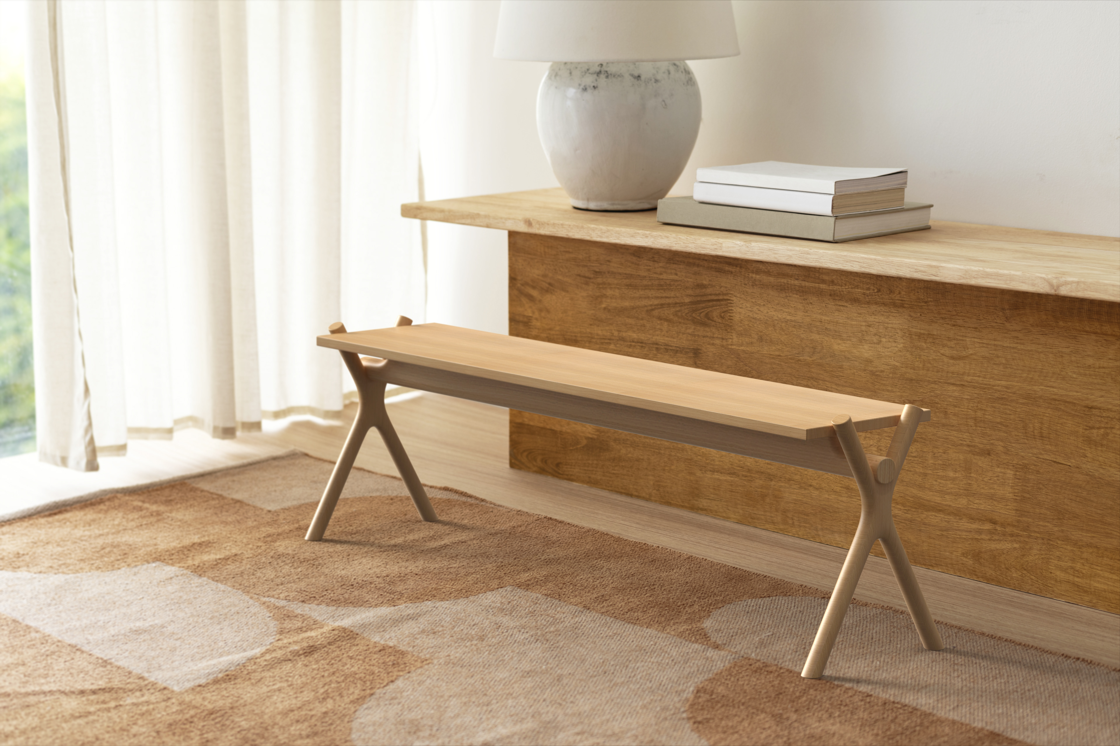 その純粋な造形に宿る佇まいをモチーフとして、このベンチを設計しました。