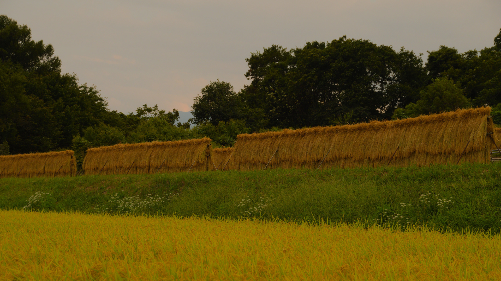 「米」というキーワードから私たちが着目したのは、収穫期の田園風景に現れる「稲架掛け(はさがけ)」の姿でした。